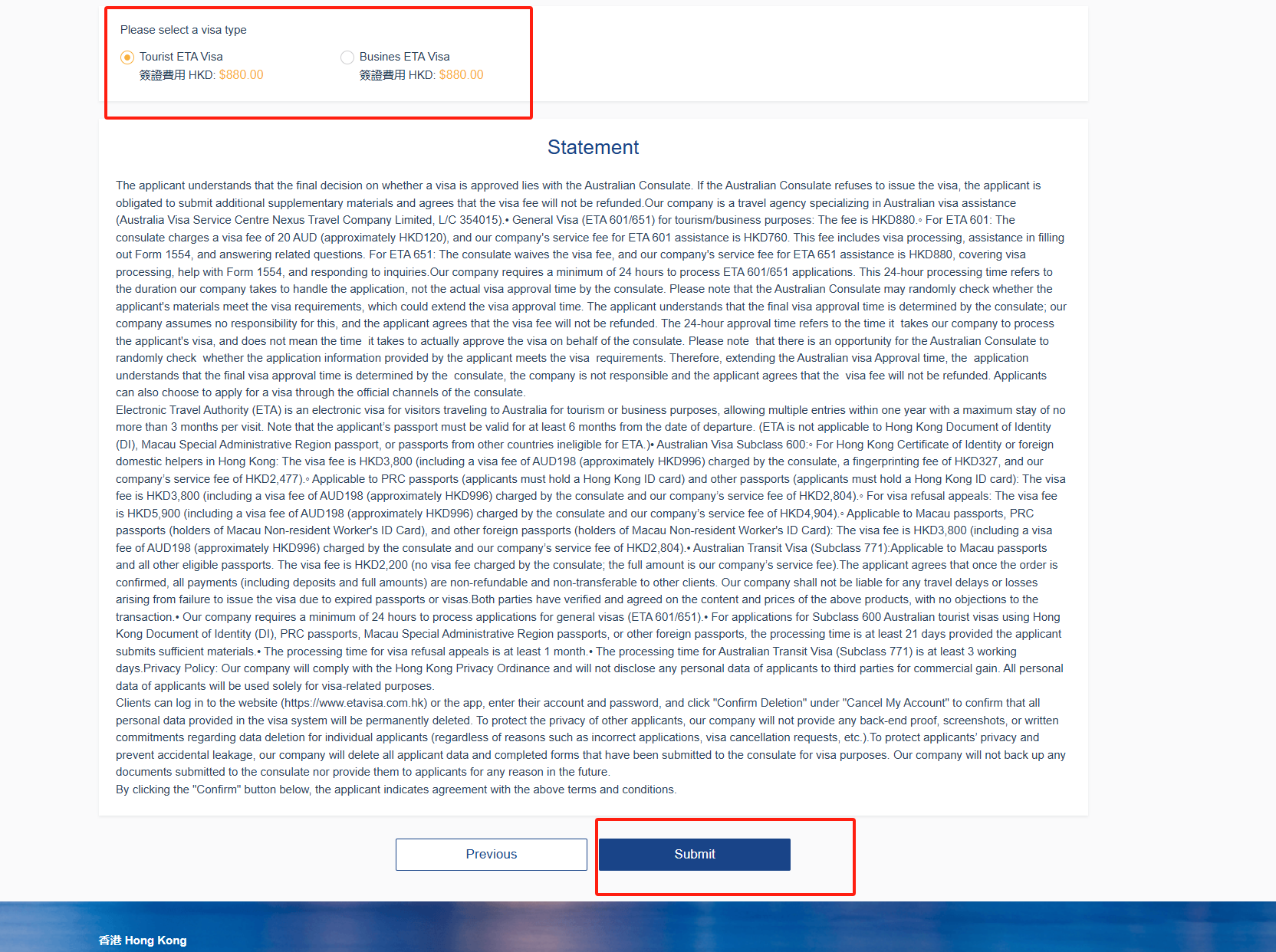 香港居民申請