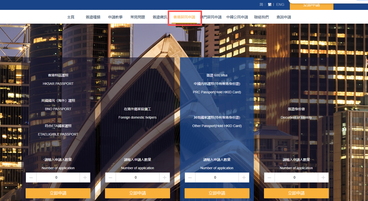 2、如您是香港護照,選擇香港居民申請;